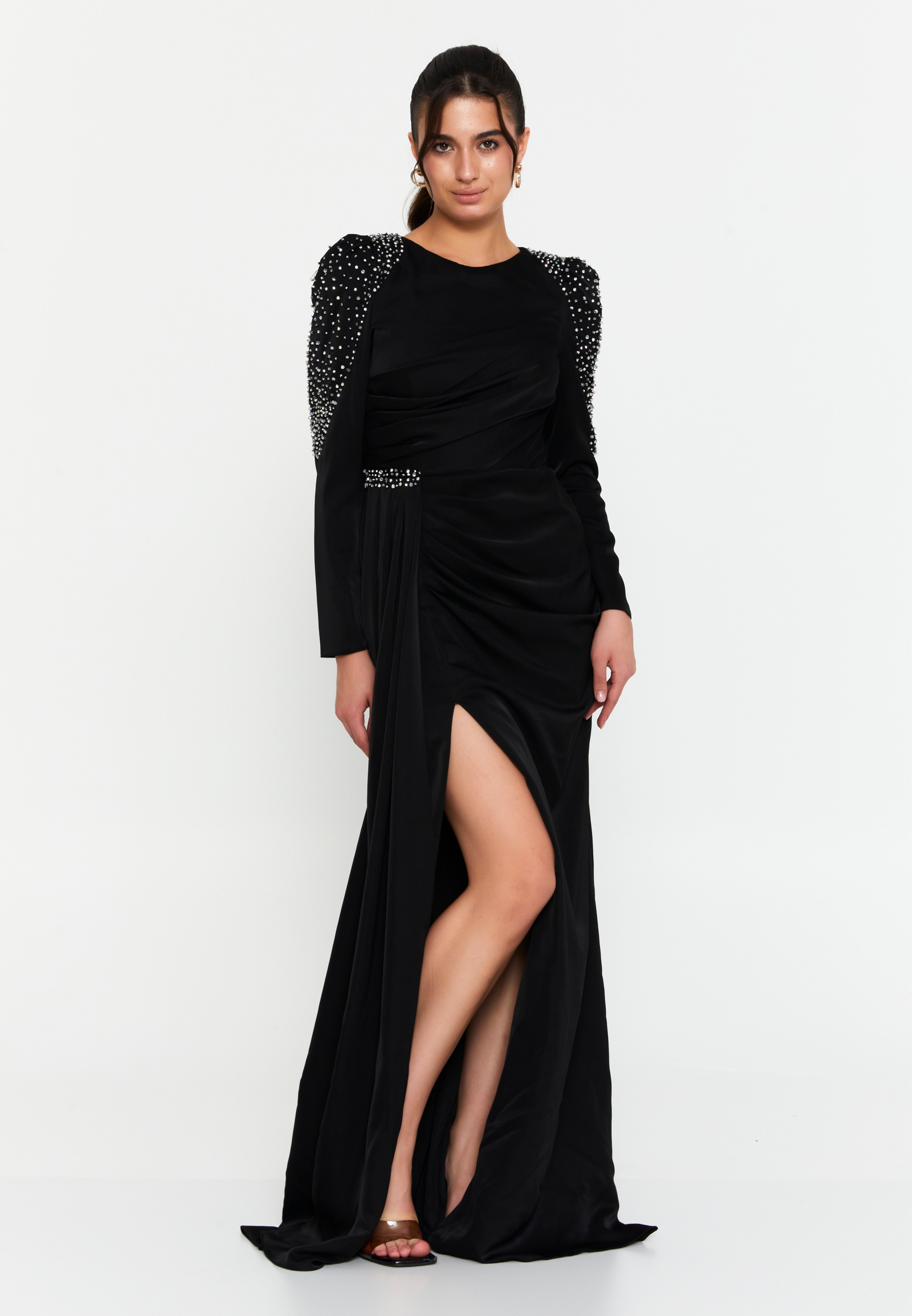 The print blooms like ink washed across silk — soft, organic, alive. A lightweight woven base creates fluid drape with structured restraint. A gathered waist shapes the form with gentle definition. Every turn leaves behind the trace of movement itself.